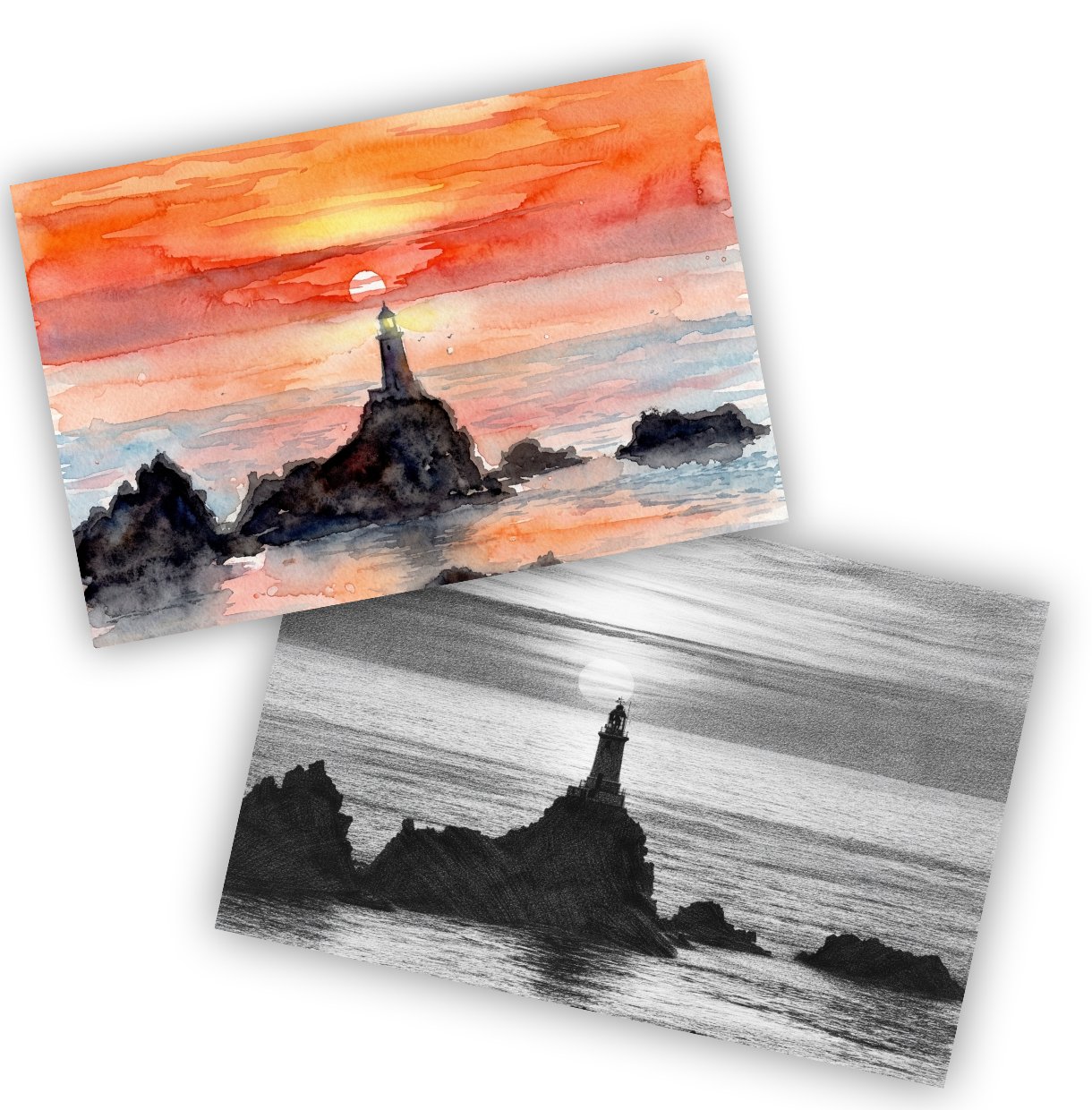 Watercolour Print, Pencil Sketch