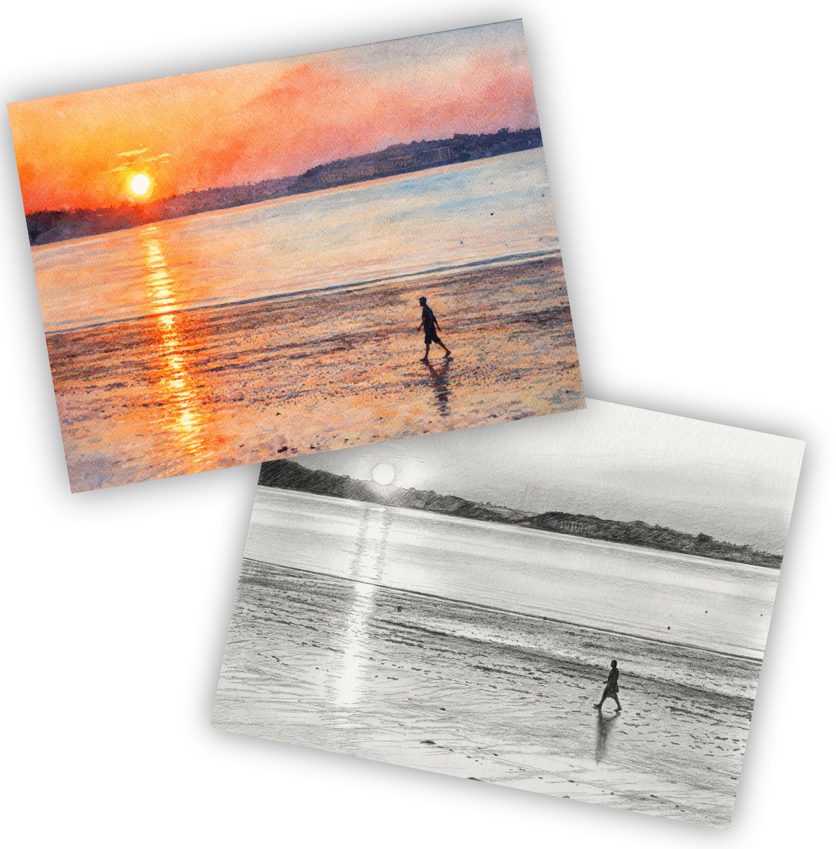 Watercolour Print, Pencil Sketch