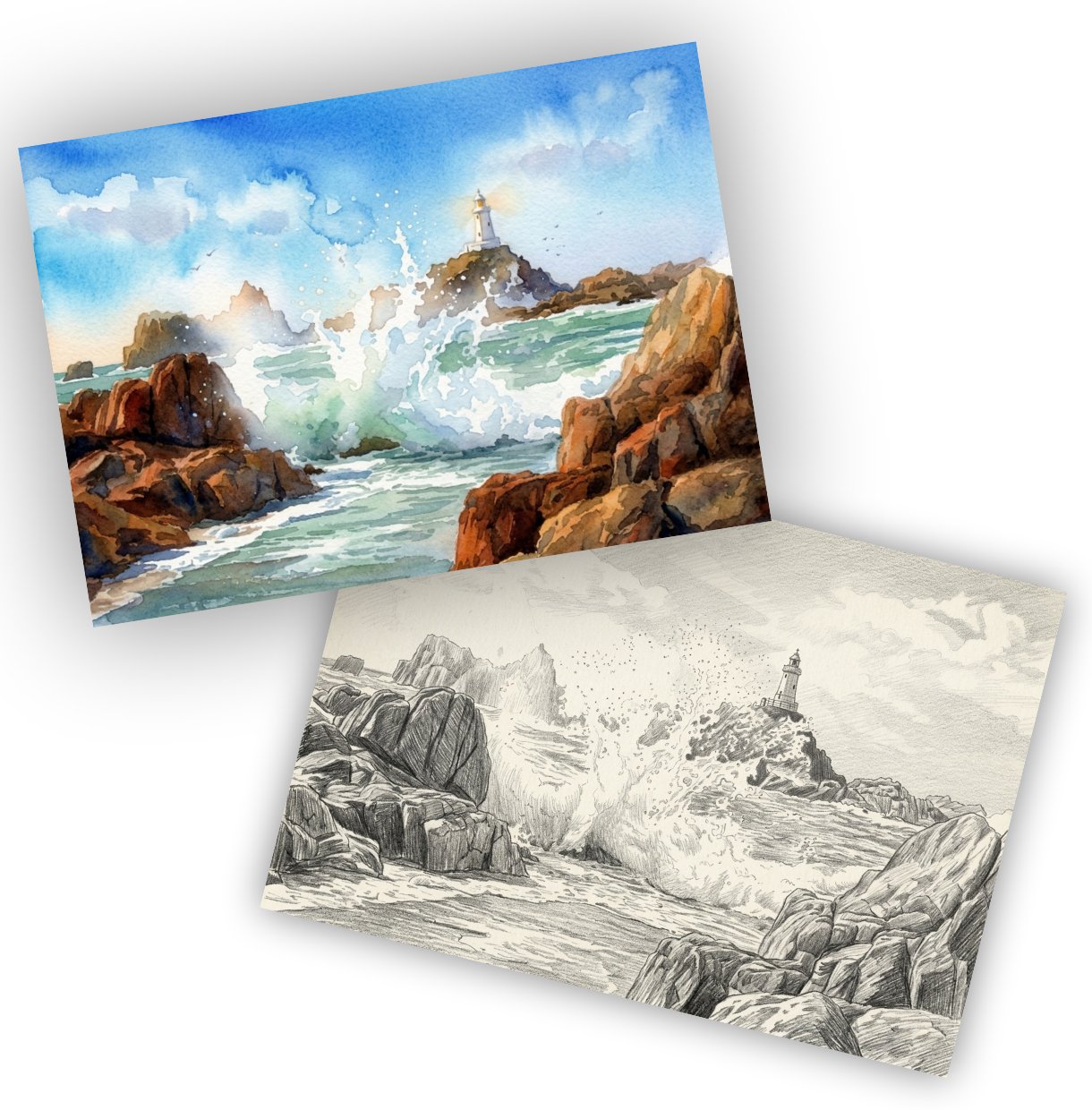 Watercolour Print, Pencil Sketch
